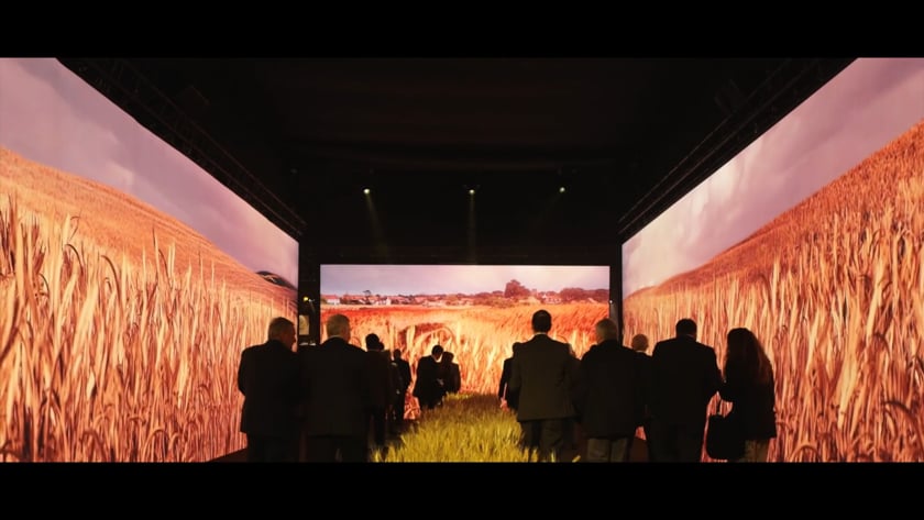 Un camino intervenido con diversos elementos del imaginario de CCU dio la bienvenida a los invitados. El recorrido conducía hacia una plaza de arribo, inspirada en la antigua fábrica de Limache, y luego a un túnel inmersivo que transportaba al público al origen cervecero —los campos de cebada mediante luz, sonido y aroma.