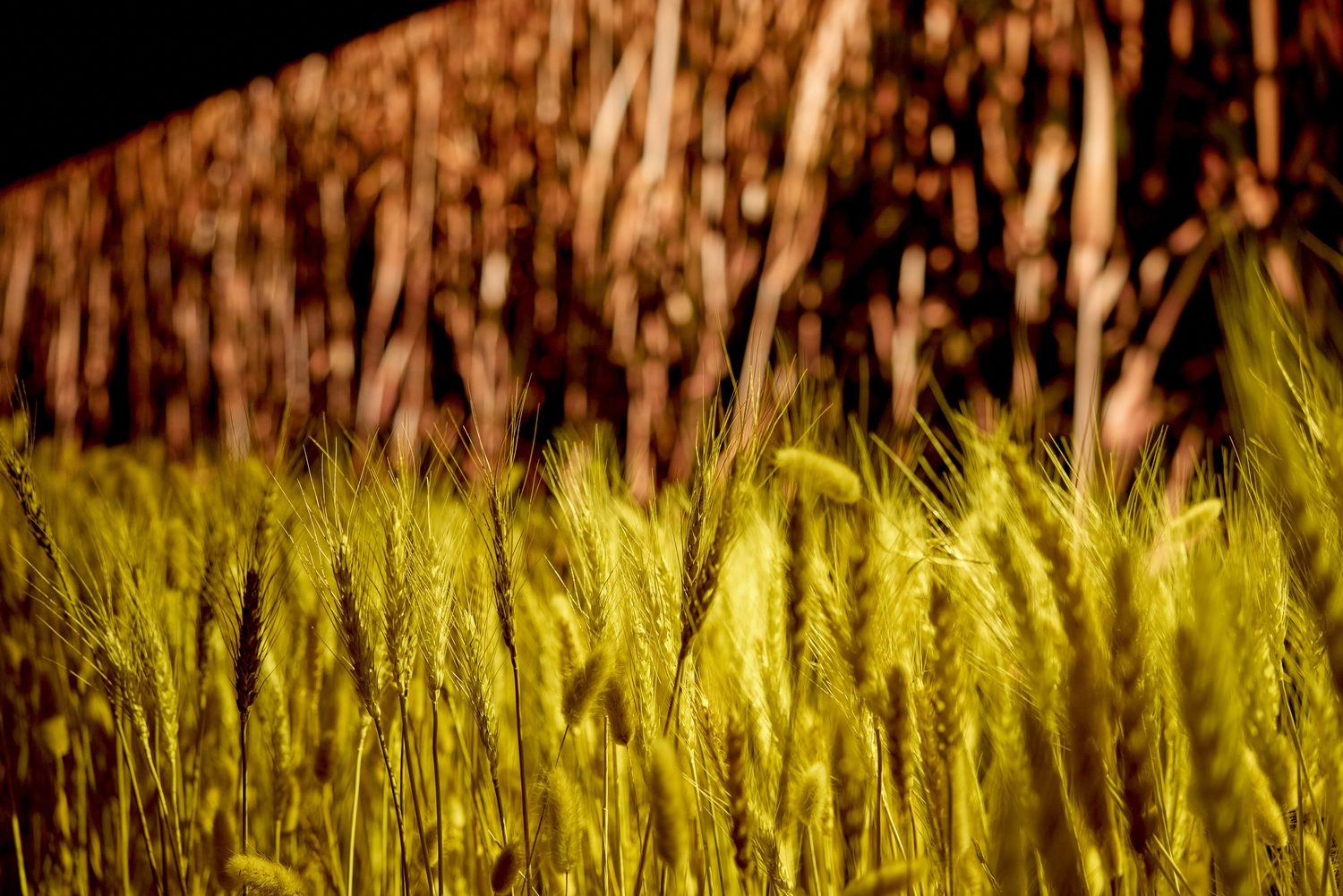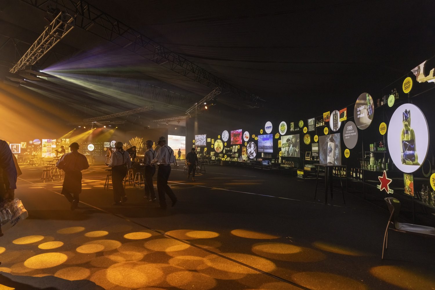 The route led to an arrival plaza, inspired by the historic Limache brewery, and then into an immersive tunnel that transported the audience back to the origins of beer — the barley fields — through light, sound, and scent.