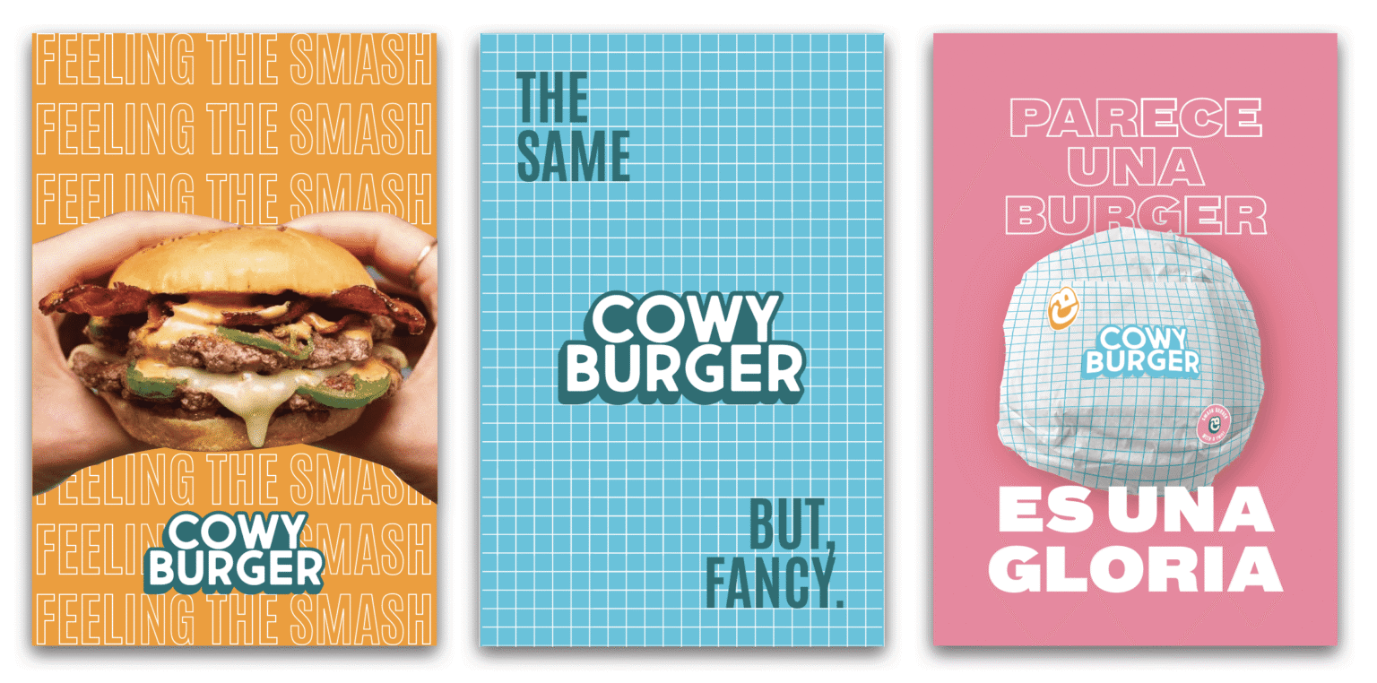 El branding de Cowy Burgers se rediseñó para adaptarse al espíritu creativo y ecléctico local. La identidad mantiene su carácter fresco, con una paleta cromática atrevida y gráfica, inspirada en Miami. Esta esencia juvenil y moderna se traduce en una experiencia gastronómica que va más allá del producto, conectando emocionalmente con una audiencia cosmopolita y diversa.
