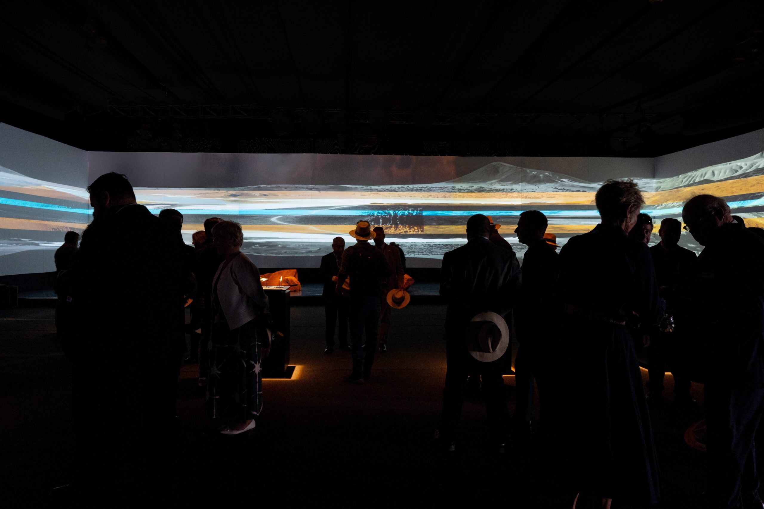 La terraza de bienvenida fue concebida como un espacio corporativo, donde el contraste de la puesta en escena empapaba a los invitados de Teck desde su llegada. Un lugar de recepción donde la vitalidad y la comunidad se volvían a encontrar. Para continuar, se generó un espacio de transición que introducía el concepto principal: El pulso de la tierra. Los invitados procedían a una sala inmersiva, oscura e intrigante, un museo efímero donde se exhibieron muestras arqueológicas rescatadas del proceso de construcción del puerto y minerales propios del territorio norteño. Un gran lienzo acompañaba proyectando una pieza audiovisual y una sonorización envolvente, cautivando y transportando a los invitados al territorio y al centro de nuestra tierra. La sala de ceremonia, ubicada a continuación, fue testigo de una secuencia de hitos inaugurales que dejaron a los espectadores conectados con la esencia de Teck. Gráfica audiovisual acompañó toda la función y cumplió un rol fundamental al proyectar la épica construcción de la mina y puerto. El cierre estuvo a cargo de la orquesta de tarapacá con una musicalización compuesta y dirigida por Hugo Manzi, acompañado de una pieza multimedia que permitía sentir y visualizar el ritmo de la música de Violeta Parra reflejados en elementos de la tierra. Estratégicamente se guardó la vista al puerto para el final. Se diseñó un momento de distensión y cocktail en una gran terraza con increíbles vistas panorámicas al mar como una oda visual a la monumentalidad de la industria, creando una conexión emocional única entre los asistentes.