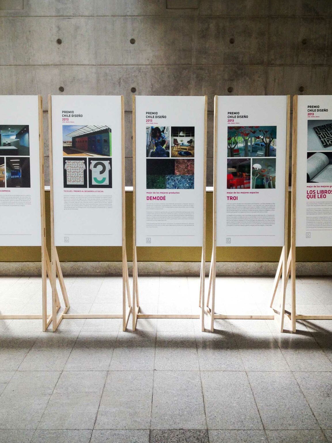 Para la 5º versión del premio se organizó la Muestra Premio Chile Diseño, una exhibición Itinerante abierta a todo público que inició su trayecto en el Centro Cultural Palacio la Moneda. Para exhibir los premios diseñamos soportes de exhibición de bajo costo y producción simple en módulos adaptables; lo que permitió versatilidad en el layout según los distintos espacios de emplazamiento. Estos soportaron láminas y objetos diferenciando de manera clara las categorías.